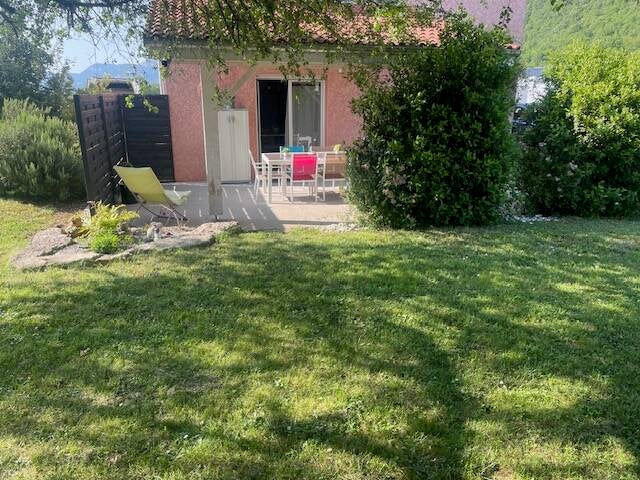 La maison est superbe, tout y est à disposition, elle est propre et très bien agencée. Le jardin est magnifique, avec une piscine et sa vue sur la montagne.
